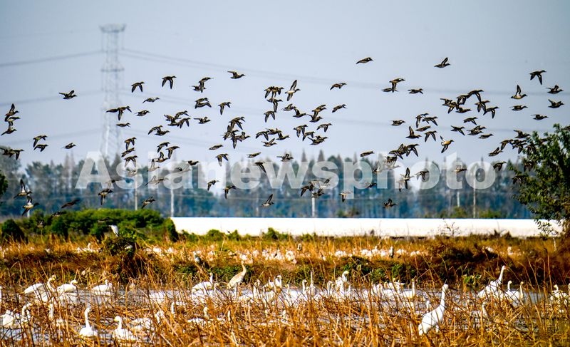 图片说明:2025年11月19日,在位于江西省南昌市鄱阳湖畔的南昌五星白鹤保护小区内,数万只白鹤、天鹅、鸿雁等候鸟在此栖息,嬉戏,鸟鸣声不绝于耳。