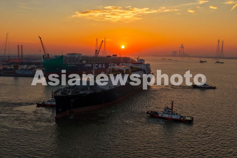 当日,由扬子江船业集团建造的17.5万立方LNG运输船“鑫福124”轮,在泰州海事部门全程协调保障下,于江苏泰兴市顺利出江试航。