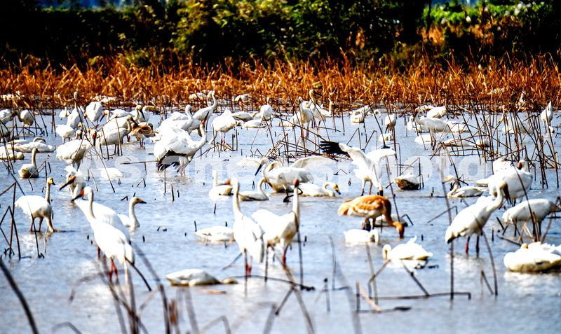 图片说明:2025年11月19日,在位于江西省南昌市鄱阳湖畔的南昌五星白鹤保护小区内,数万只白鹤、天鹅、鸿雁等候鸟在此栖息,嬉戏,鸟鸣声不绝于耳。