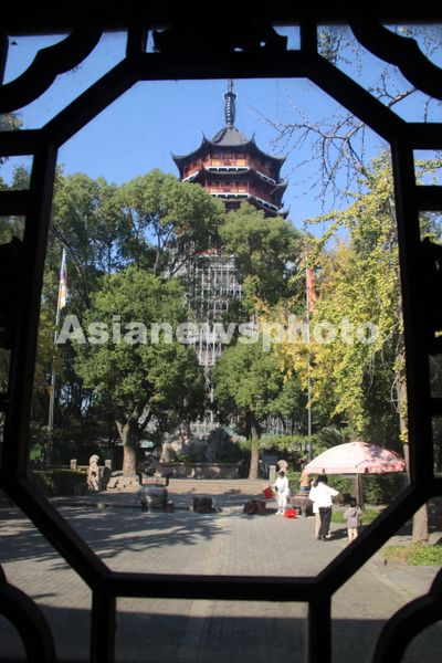 2025年11月20日,正在修缮中的苏州千年古刹报恩寺塔。