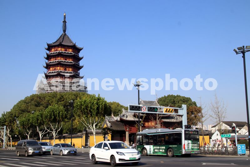 2025年11月20日,正在修缮中的苏州千年古刹报恩寺塔。