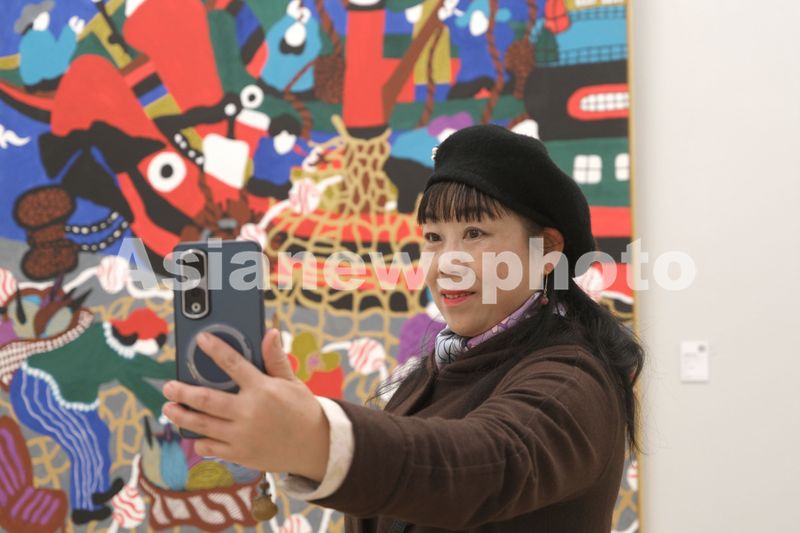 2025年11月26日,观众在北京观看由浙江省美术家协会、中共舟山市委宣传部等单位主办的“海上的乡土世界——新时代舟山渔民画艺术作品展”。