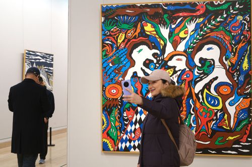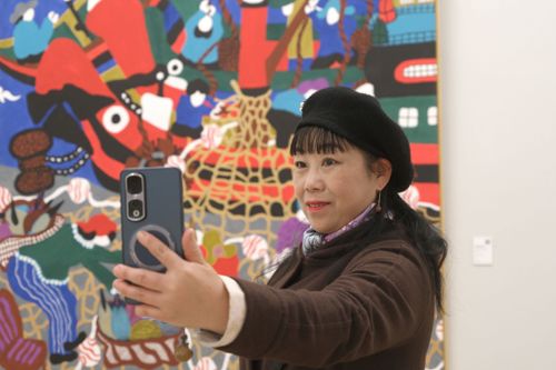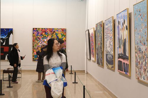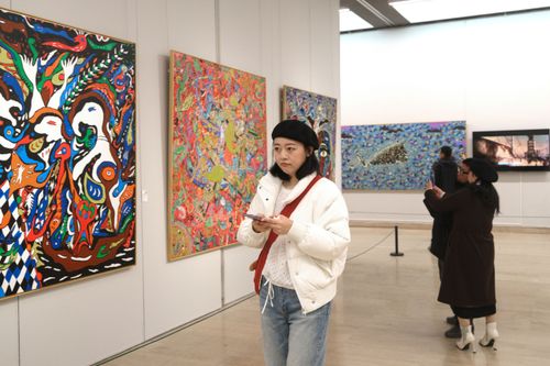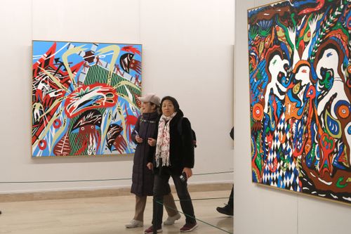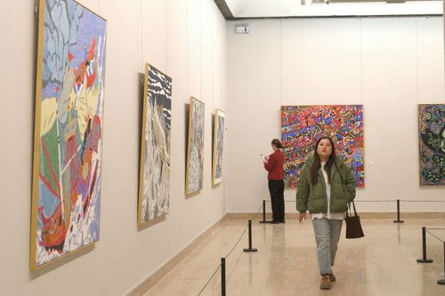 当日,该展在中国美术馆开幕。展览展出67件渔民画代表作品,这些作品以质朴的笔触、浓烈的色彩,勾勒出海岛地区的生产生活场景、民间民俗风情等,展现了人、鱼、海同生共长的时代图景。