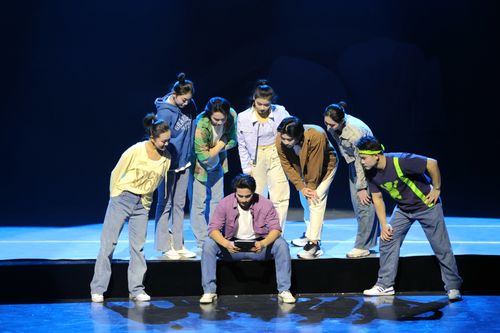 图片说明:2025年11月25日,在江苏省建湖文化艺术中心大剧院的杂技剧《盐·运》舞台演出场景。