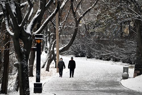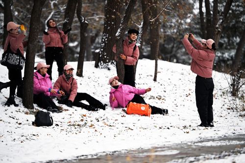 图片说明:2025年11月27日,一场降雪过后,北陵公园银装素裹。