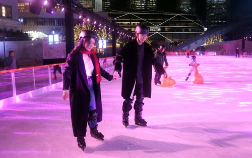 图片说明:2025年11月26日,上海西岸梦中心广场,人们在户外滑冰场感受冰上运动魅力。