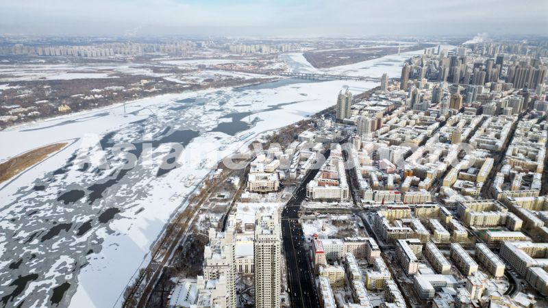 图片说明:雪后哈尔滨市道里区与松花江黑白相间的美景(无人机照片)。
