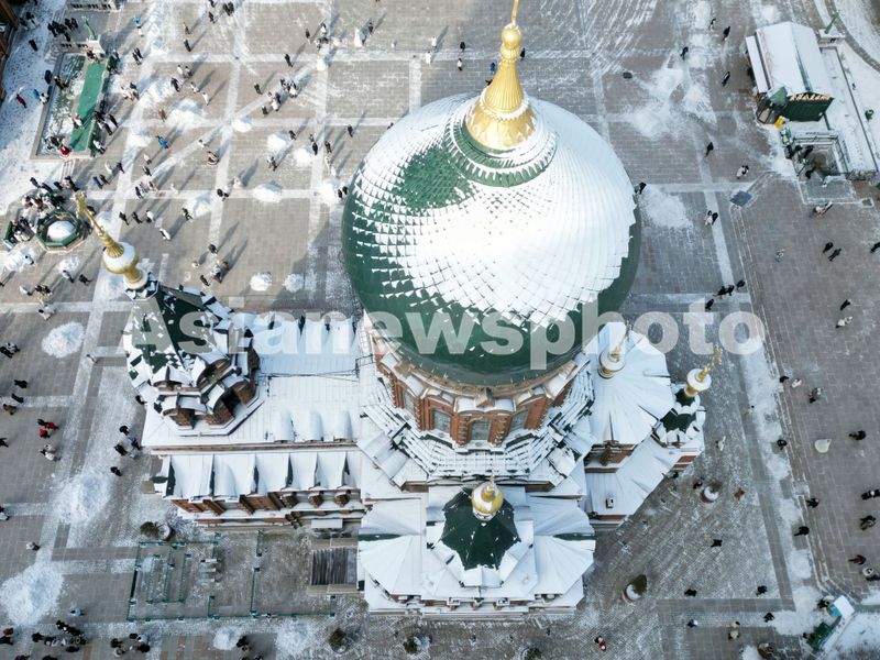 图片说明:雪后索菲亚教堂游人如织(无人机照片)。