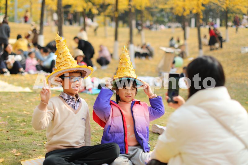 图片说明:2025年11月29日,游客在位于重庆市两江新区的重庆中央公园的银杏美景前留影。