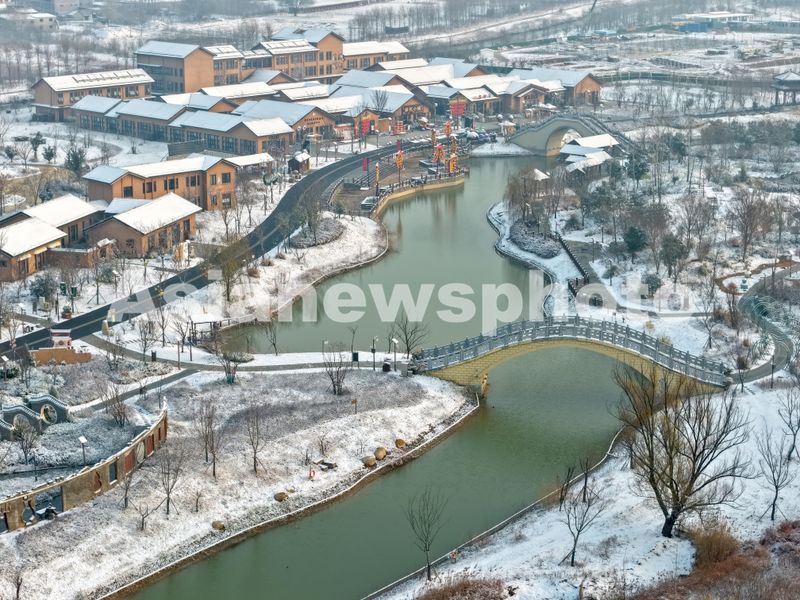 2025年12月13日,在安徽省亳州市谯城区华佗百草园景区拍摄的雪景。冬日时节,受冷空气影响,安徽省亳州市迎来降雪天气,雪后的华佗百草园景区银装素裹,美不胜收,雪景如画。