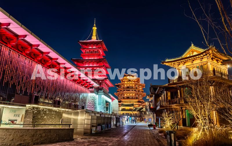 2025年12月13日,河南新密溱洧水城灯光璀璨,景色迷人。美丽的景色和独特的建筑风貌等吸引各地游客汇集于此感受水城魅力。(实习编辑 华俣涵)