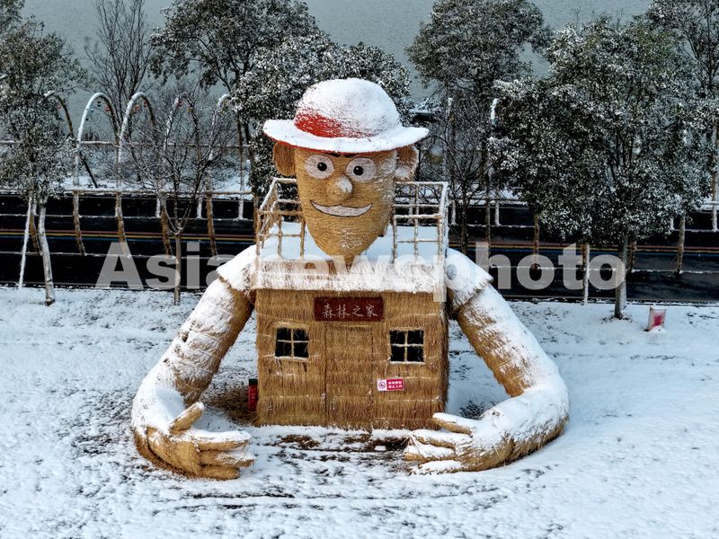 12月13日,在安徽省亳州市谯城区华佗百草园景区拍摄的雪景。