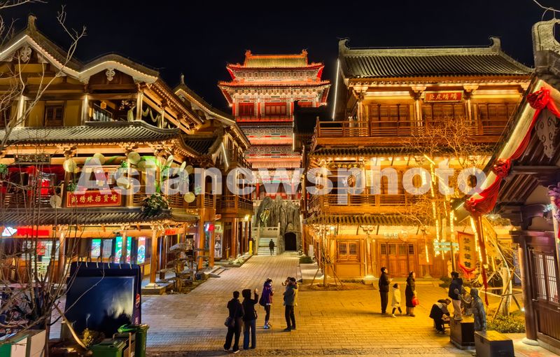 2025年12月13日,河南新密溱洧水城灯光璀璨,景色迷人。美丽的景色和独特的建筑风貌等吸引各地游客汇集于此感受水城魅力。(实习编辑 华俣涵)