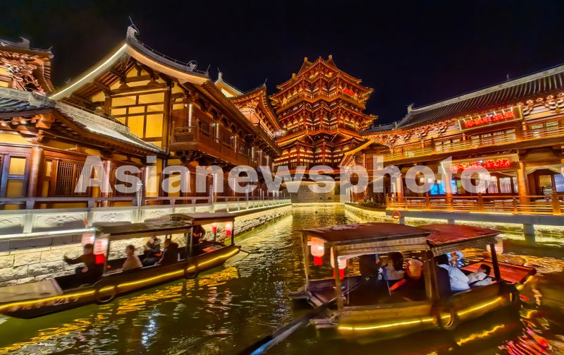 2025年12月13日,河南新密溱洧水城灯光璀璨,景色迷人。美丽的景色和独特的建筑风貌等吸引各地游客汇集于此感受水城魅力。(实习编辑 华俣涵)