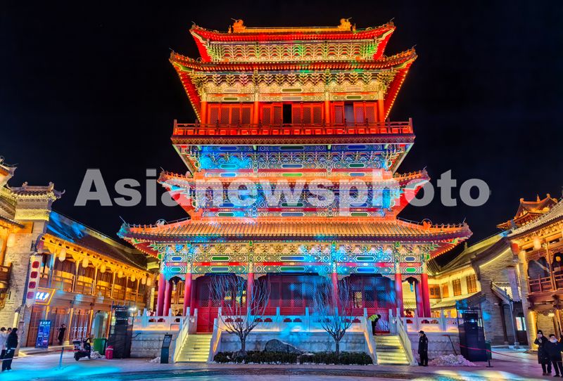 2025年12月13日,河南新密溱洧水城灯光璀璨,景色迷人。美丽的景色和独特的建筑风貌等吸引各地游客汇集于此感受水城魅力。(实习编辑 华俣涵)