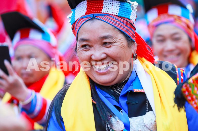 2025年12月17日,湖南省郴州市桂阳县塘市镇大溪村,瑶族同胞身着节日盛装参加第十五届湘南瑶乡“盘王节”暨“坐歌堂”非物质文化遗产展示活动。