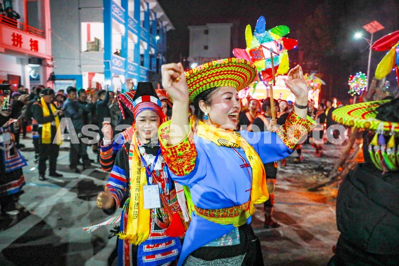 2025年12月17日,湖南省郴州市桂阳县塘市镇大溪村,瑶族同胞在参加篝火晚会。