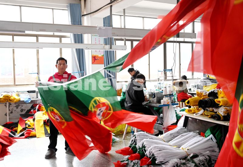 2025年12月22日,浙江省金华市武义县金力球迷用品有限公司裁剪、缝纫、包装等生产线一派繁忙,员工加班加点生产美加墨世界杯参赛国家的国旗和球迷用品。