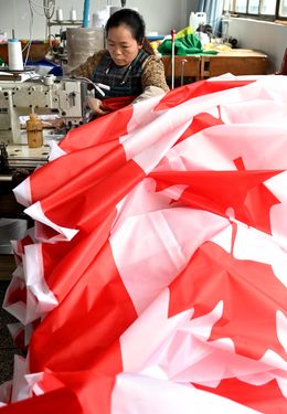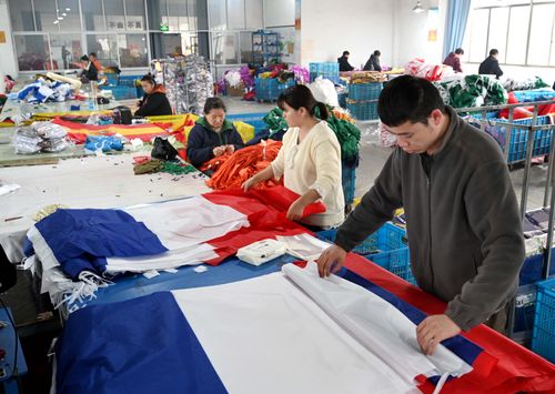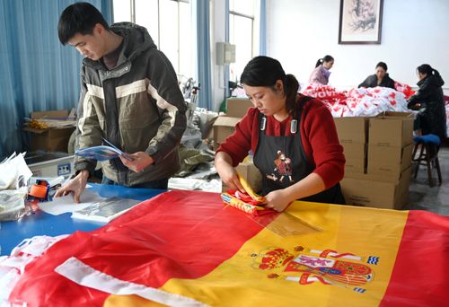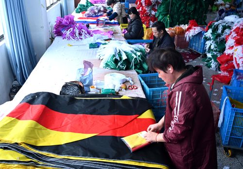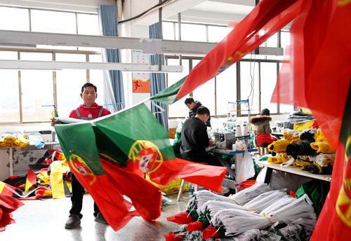 2025年12月22日,浙江省金华市武义县金力球迷用品有限公司裁剪、缝纫、包装等生产线一派繁忙,员工加班加点生产美加墨世界杯参赛国家的国旗和球迷用品。