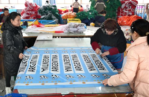 随着2026年美加墨足球世界杯的临近,浙江省金华市武义县金力球迷用品有限公司抢抓商机,通过设在义乌国际商贸城的窗口和电商承接了巴西、阿根廷、加拿大等参赛国家的大量国旗及围巾、披风、帽子、背包等球迷用品订单。连日来企业员工日夜加班开足马力生产、包装参赛国国旗及球迷用品。