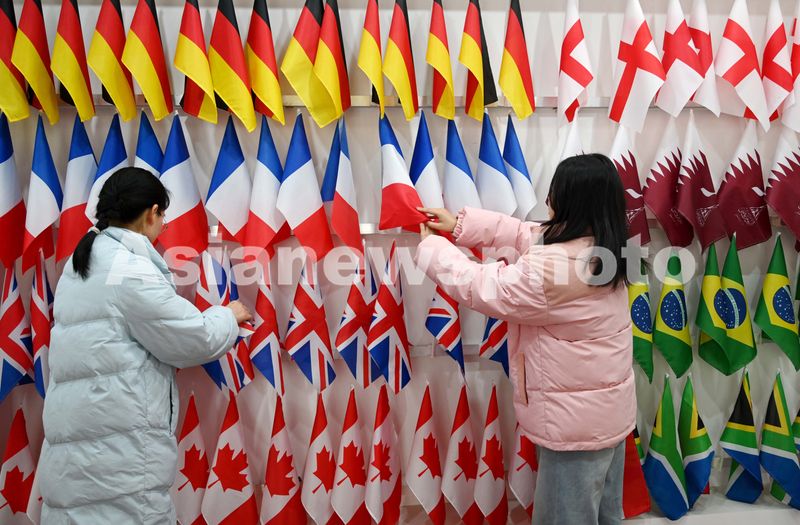 2025年12月22日,浙江省金华市武义县金力球迷用品有限公司裁剪、缝纫、包装等生产线一派繁忙,员工加班加点生产美加墨世界杯参赛国家的国旗和球迷用品。