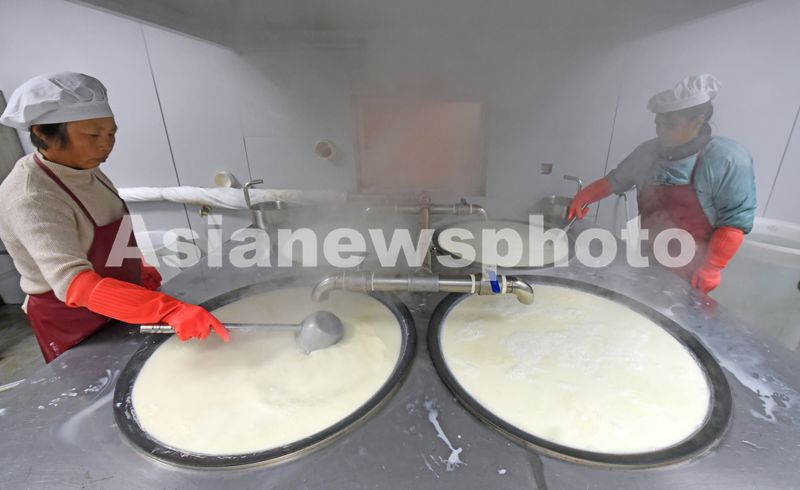 2025年12月25日,浙江省台州市仙居县上张乡活壹豆制品加工小作坊,村民正在制作当地特产——盐卤豆腐。