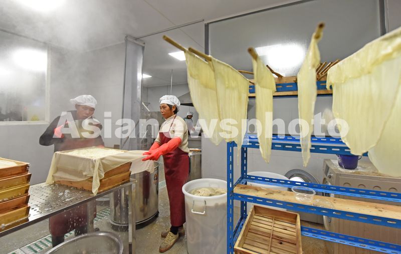 2025年12月25日,浙江省台州市仙居县上张乡活壹豆制品加工小作坊,村民正在制作当地特产——盐卤豆腐。