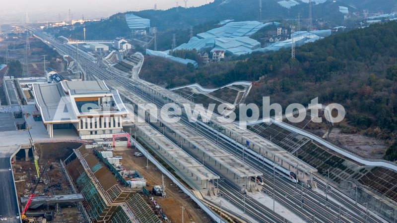 2025年12月26日,试运行列车驶入金建高铁兰溪东站。