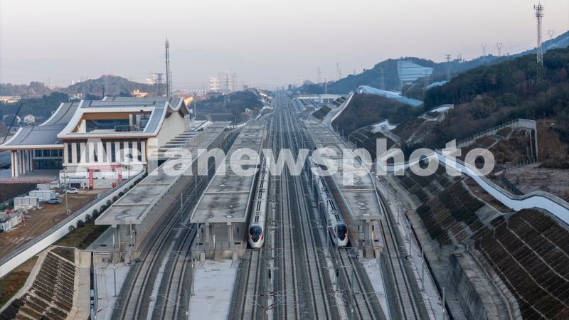 2025年12月26日,试运行列车驶入金建高铁兰溪东站。
