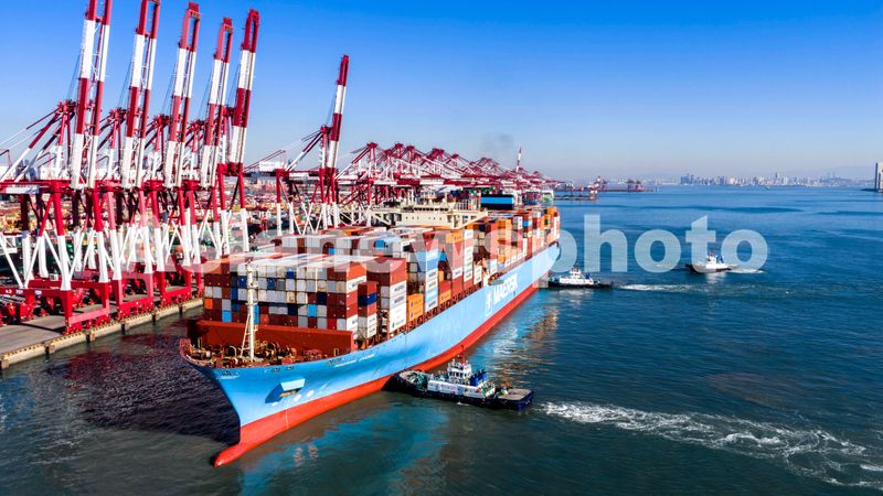 2025年12月26日,山东港口青岛港前湾集装箱码头巨轮穿梭、吊臂起落,一派繁忙有序的作业景象。