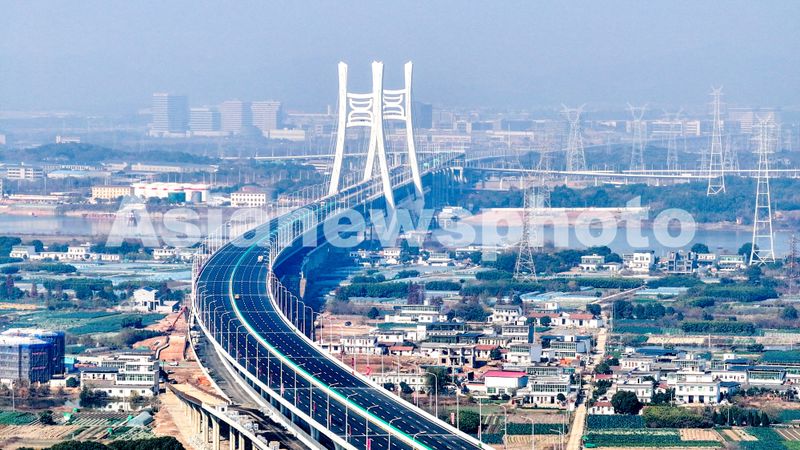 图片说明:2025年12月27日,江西南昌,位于南昌县蒋巷镇的隆兴赣江公铁大桥项目现场,建设人员正在有序抓紧大桥各项工程收尾作业。