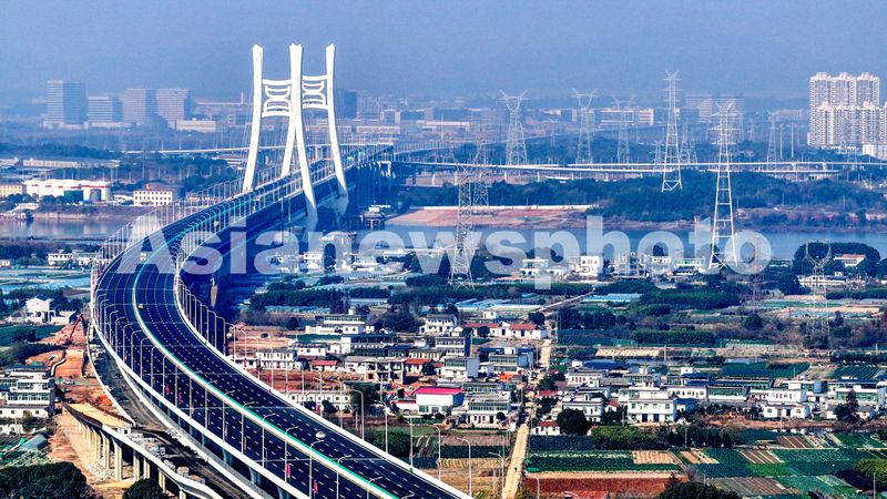图片说明:2025年12月27日,江西南昌,位于南昌县蒋巷镇的隆兴赣江公铁大桥项目现场,建设人员正在有序抓紧大桥各项工程收尾作业。