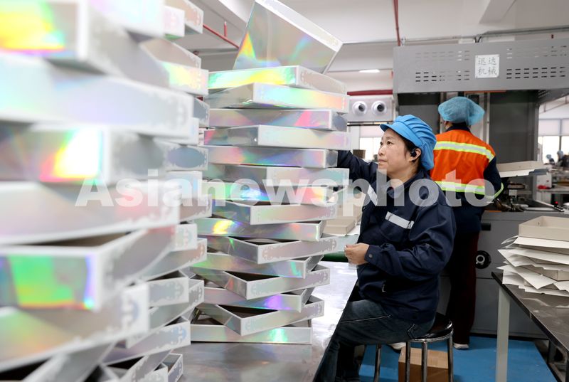 2025年12月29日,在江苏省宿迁市洋河新区的江苏宏亚包装科技有限公司生产车间内,工人忙着赶制订单产品。