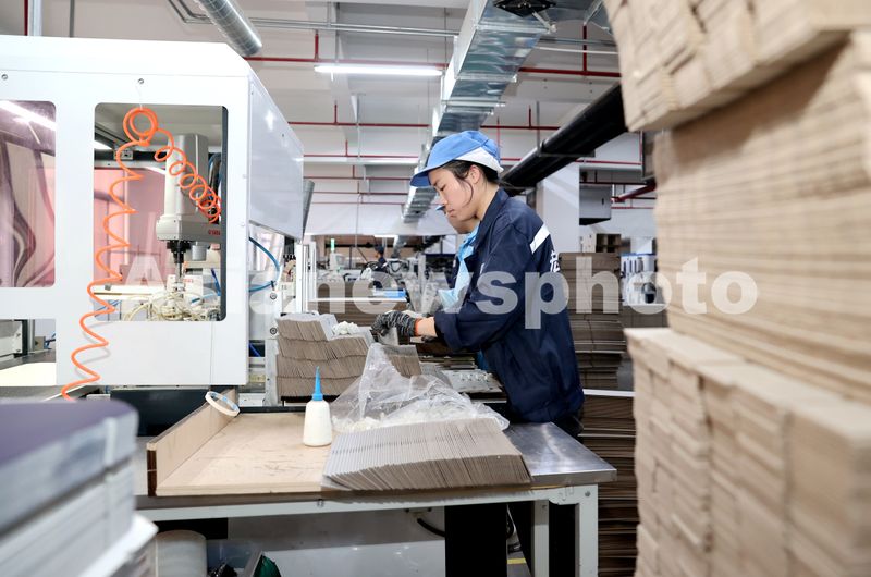 2025年12月29日,在江苏省宿迁市洋河新区的江苏宏亚包装科技有限公司生产车间内,工人忙着赶制订单产品。