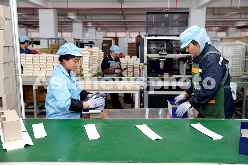 2025年12月29日,在江苏省宿迁市洋河新区的江苏宏亚包装科技有限公司生产车间内,工人忙着赶制订单产品。