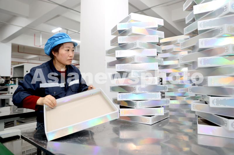 2025年12月29日,在江苏省宿迁市洋河新区的江苏宏亚包装科技有限公司生产车间内,工人忙着赶制订单产品。