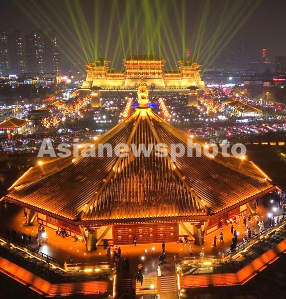 图片说明:2026年1月1日晚,游客在河南省洛阳市隋唐洛阳城国家遗址公园内,沉浸式体验隋唐文化夜游文旅项目,感受古今交融的千年古都韵味,尽享假期好时光。