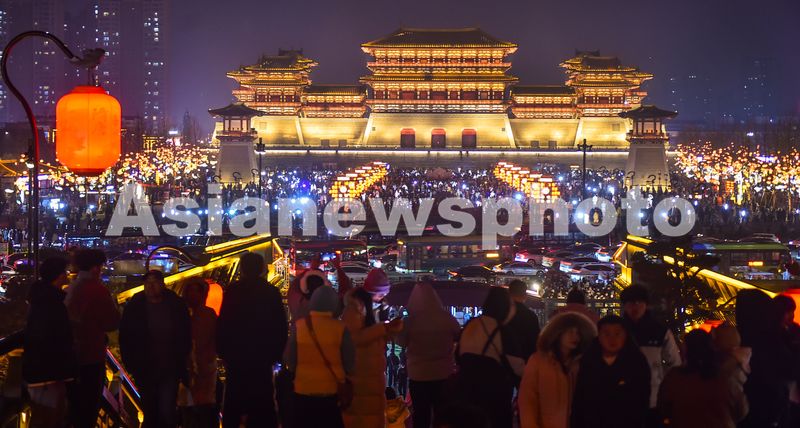图片说明:2026年1月1日晚,游客在河南省洛阳市隋唐洛阳城国家遗址公园内,沉浸式体验隋唐文化夜游文旅项目,感受古今交融的千年古都韵味,尽享假期好时光。