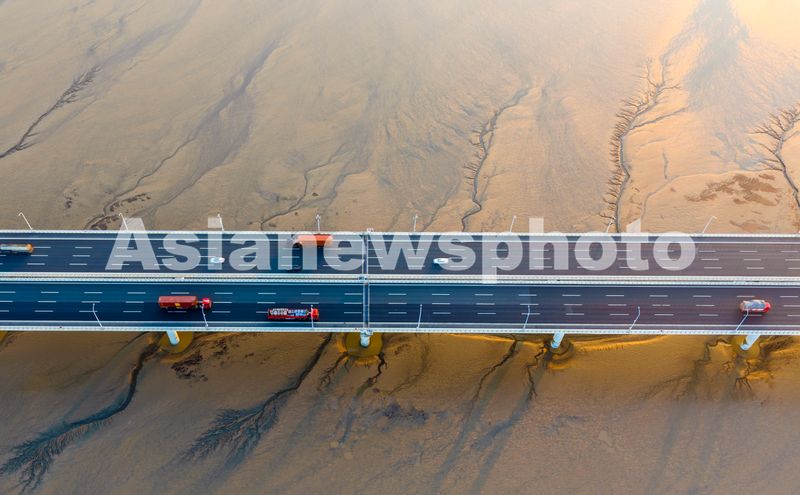 2026年1月2日,浙江省海宁市嘉绍大桥两侧钱塘江江滩“潮汐树”宛如精心雕琢的版画森林。