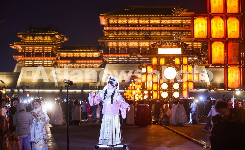图片说明:2026年1月1日晚,游客在河南省洛阳市隋唐洛阳城国家遗址公园内,沉浸式体验隋唐文化夜游文旅项目,感受古今交融的千年古都韵味,尽享假期好时光。