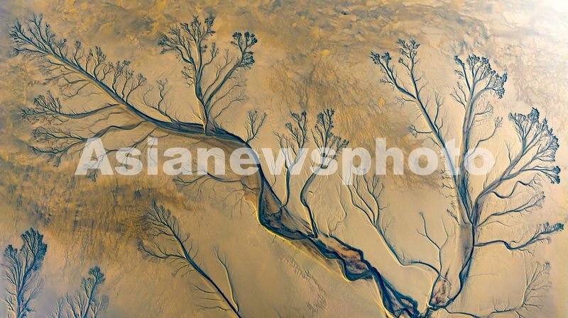 2026年1月2日,浙江省海宁市钱塘江江滩“潮汐树”宛如精心雕琢的版画森林。鳞次栉比的潮汐树景观令人叹为观止。在钱塘江潮水冲刷影响下,一株株“树干”粗壮、形态栩栩如生的“潮汐树",宛如一幅生动的大地艺术画卷。
