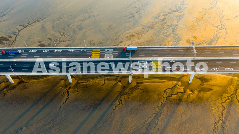 2026年1月2日,浙江省海宁市嘉绍大桥两侧钱塘江江滩“潮汐树”宛如精心雕琢的版画森林。
