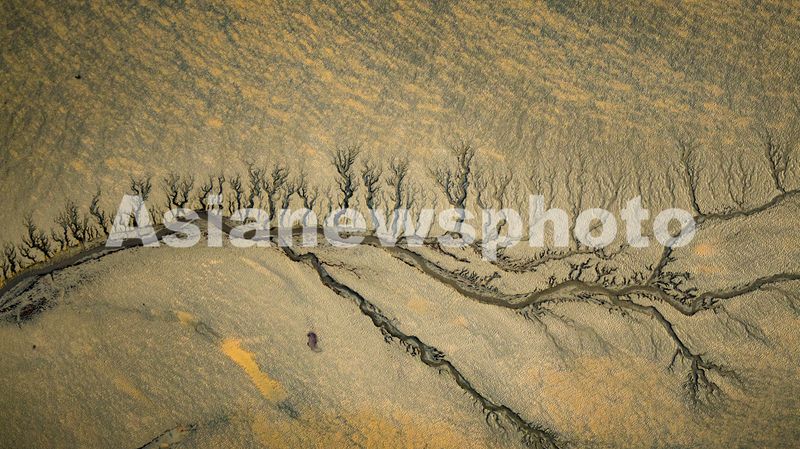2026年1月2日,浙江省海宁市钱塘江江滩“潮汐树”宛如精心雕琢的版画森林。鳞次栉比的潮汐树景观令人叹为观止。在钱塘江潮水冲刷影响下,一株株“树干”粗壮、形态栩栩如生的“潮汐树",宛如一幅生动的大地艺术画卷。