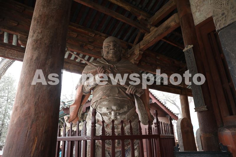 12月31日,晋祠的主殿圣母殿前的雕塑。