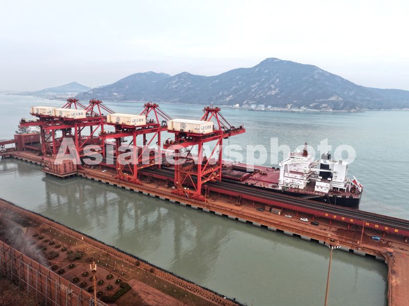 2025年1月3日晚,满载约40万吨铁矿石的香港籍“广州矿石”轮停靠江苏省连云港港新苏港码头卸载铁矿石。该轮长361.9米、宽65米,最大吃水22.29米,铁矿石是从巴西装船出发,经过40多天航行抵达目的地连云港。
