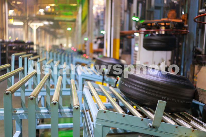 2026年1月4日,在山东省东营市广饶县大王镇的一家橡胶轮胎企业生产车间,工人们正忙碌着胎胚硫化工作。