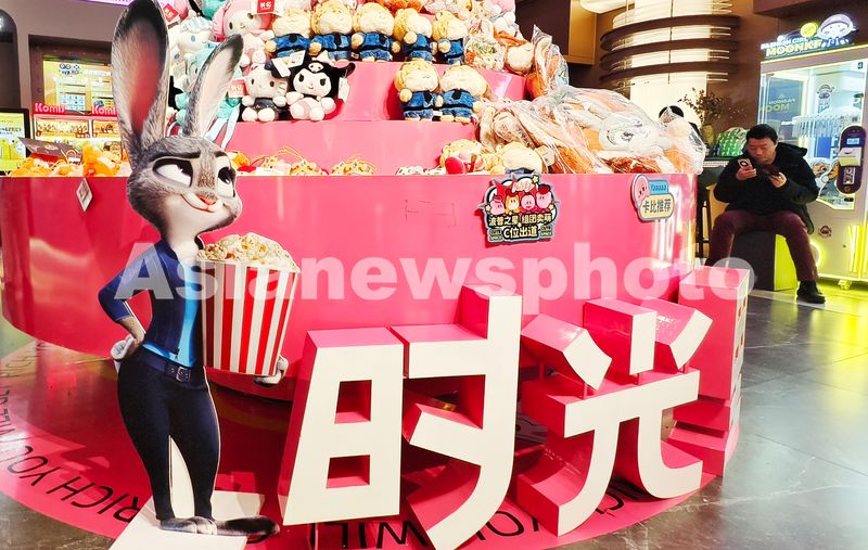 图片说明:2026年1月5日,上海电影院,迪士尼动画电影《疯狂动物城2》的正版周边毛绒玩偶吸引影迷关注。