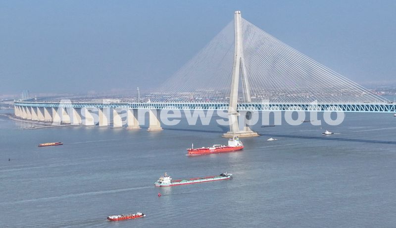 图片说明:2026年1月7日,新年伊始,长江“黄金水道”江苏省张家港段水域,运输生产生活物资的船舶有序在江面上往来穿梭。