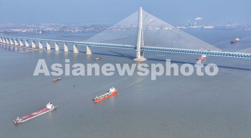 图片说明:2026年1月7日,新年伊始,长江“黄金水道”江苏省张家港段水域,运输生产生活物资的船舶有序在江面上往来穿梭。