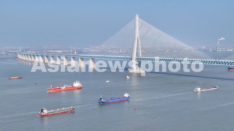 图片说明:2026年1月7日,新年伊始,长江“黄金水道”江苏省张家港段水域,运输生产生活物资的船舶有序在江面上往来穿梭。